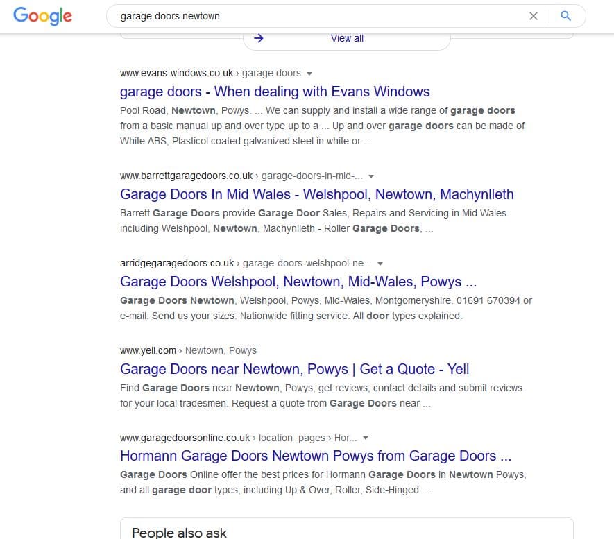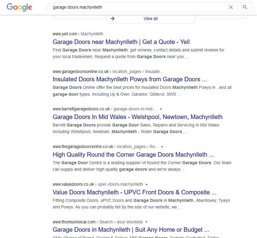 Our client Barrett Garage Doors has recently expanded supplying their services into Wales. For the last 6 months, we have been targeting SEO for Google Organic rankings in the main towns in Wales. We have attached some of the results we have achieved.